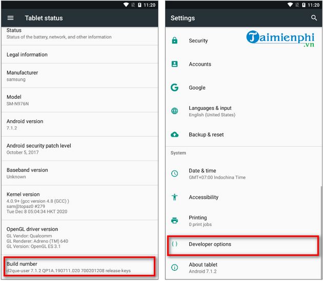 Bước 2: Kích hoạt Tùy chọn nhà phát triển